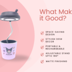 Cute cartoon-themed pen stand with a foldable LED desk lamp and USB charging, perfect for study tables, kids’ rooms, and decorative desk setups.