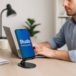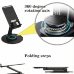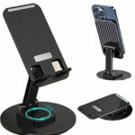 Compact and foldable desktop phone stand with smooth 360° rotation, designed for hands-free viewing, video calls, and everyday desk use.